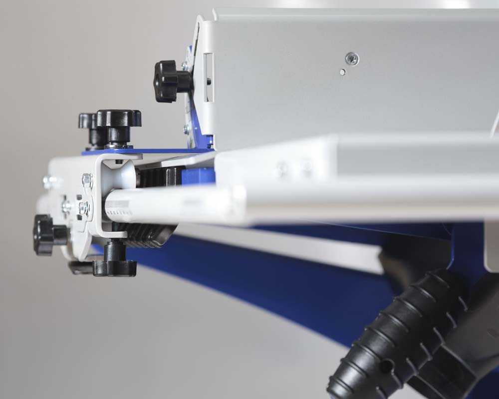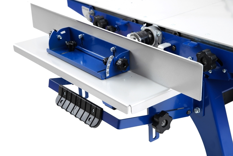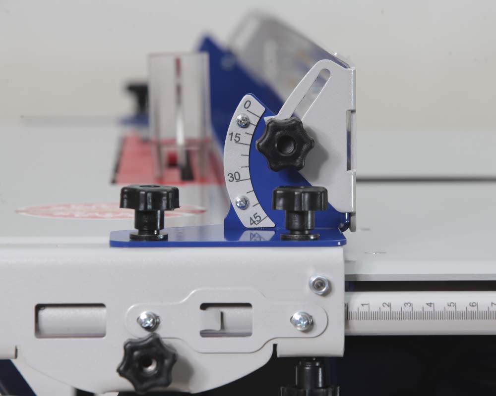 Устройство для распиловки под углом теперь часть новой линейки. Выполняется из стали, крепится на специальную каретку, легко и плавно передвигается по штанге вдоль пильного стола.