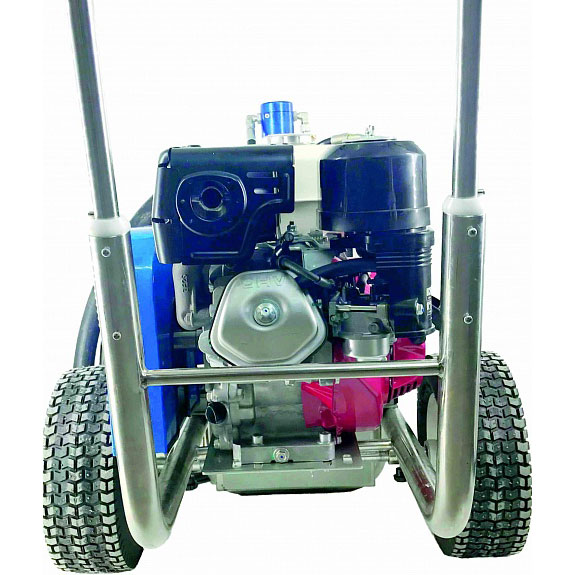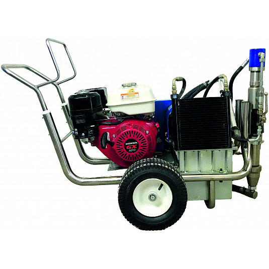 Работа производится полностью в автономном режиме, ведь при отсутствии подключения к электросети привод работает благодаря бензиновому мотору Honda – GX270. Поэтому есть возможность проводить работу по окраске даже в самых труднодоступных местах.