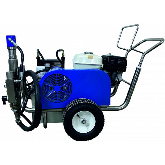 Для жидкой резины и битумной мастики - лучший вариант, бензиновый двигатель - работаем в любом месте.
