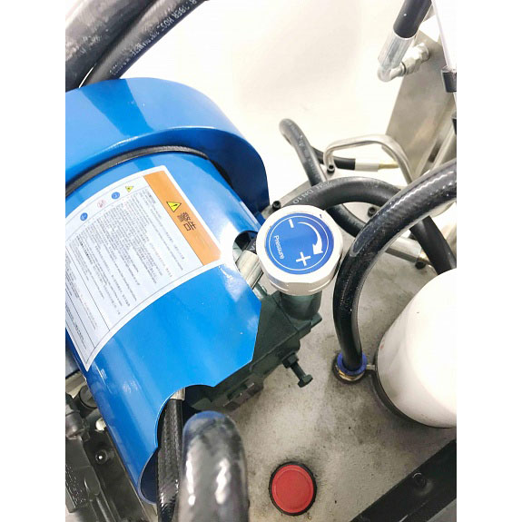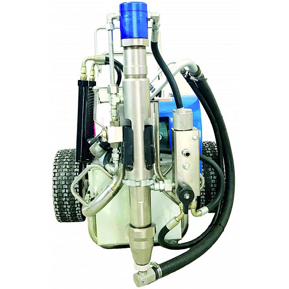 Производительность данного оборудования составляет 10,5 л/час, это позволяет проводить работы одновременно двум малярам. Для комфортного передвижения агрегата по площадке имеется перекаточная телега с широкими колесами.