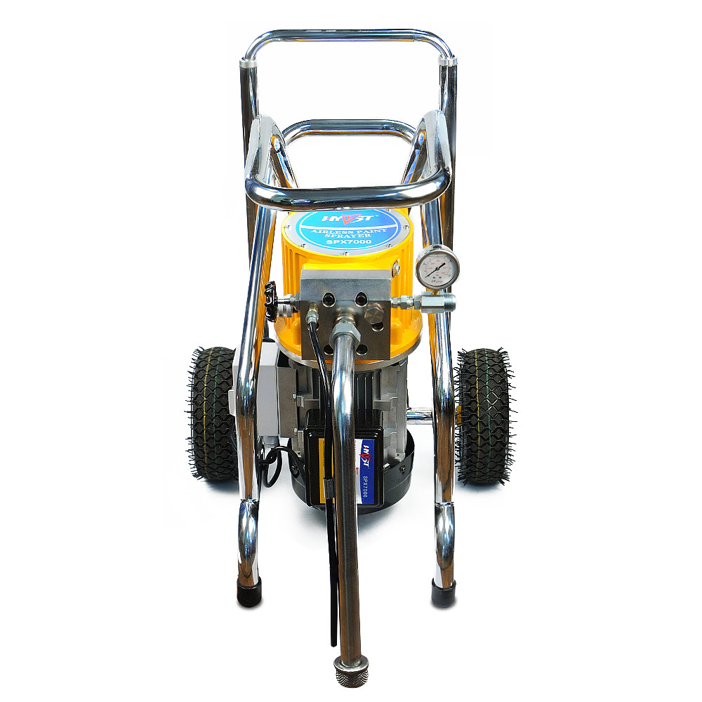 HYVST SPX 7000 - мембранный окрасочный аппарат безвоздушного распыления краски. Предназначен для распыления краски под высоким давлением на стройке, при проведения окрасочных работ внутри и снаружи зданий. Также окрасочный агрегат применяют для покраски металлических конструкций, металлических балок и ферм.
