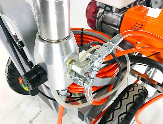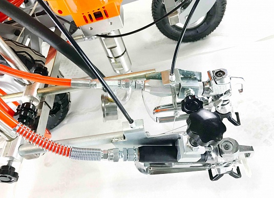 - Для более комфортного нанесения разметки агрегат оборудован универсальным креплением краскораспылителя.