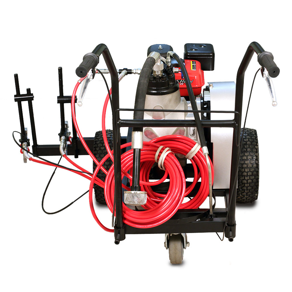 Разметочная машина SPLM 1800 может одновременно красить двумя пистолетами, что позволяет наносить параллельные полосы.