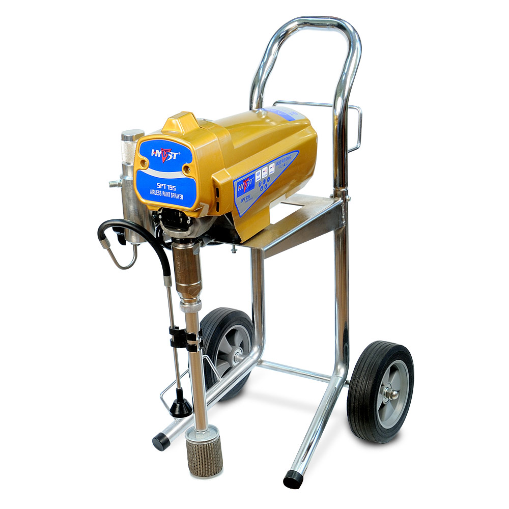 Окрасочный агрегат HYVST SPT 795 безвоздушного распыления на колесной тележке для покраски под высоким давлением.