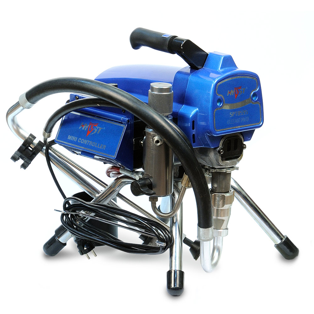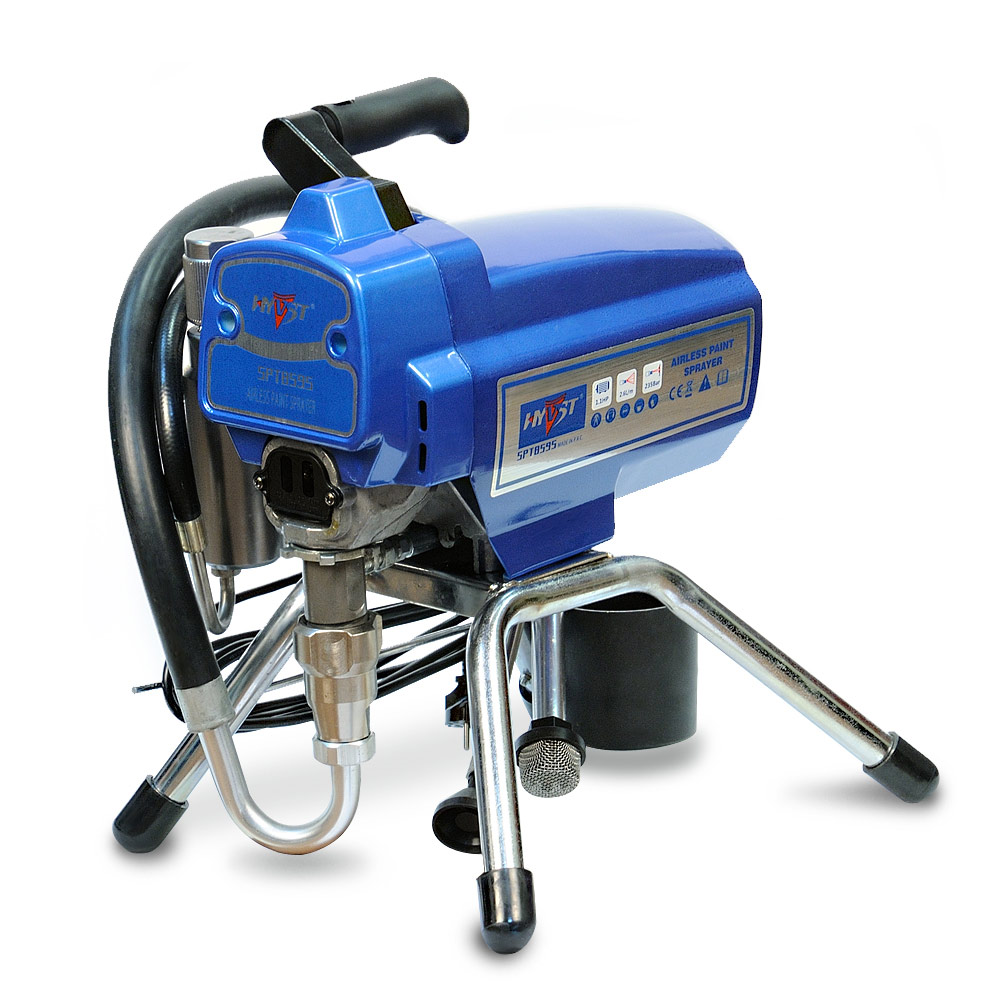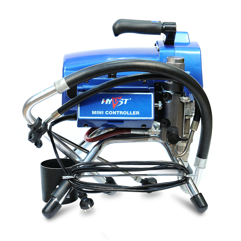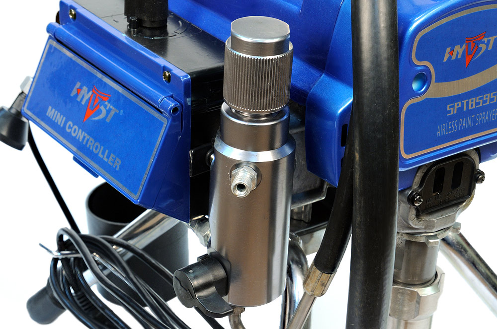 HYVST SPT 8595 - поршневой окрасочный агрегат с электрическим приводом, предназначенный для безвоздушного распыления краски под высоким давлением до 230 атм. Окрасочный аппарат собран на базе поршневого насоса для краски, аналогичного по технологии насосу Graco Ultra Max II. Окрасочный аппарат поставляется в комплекте, готовым к работе, т.е. вместе со шлангом и безвоздушным краскопультом. Окрасочный аппарат применяется для проведения покрасочных работ на строительных площадках, при покраске фасадов, стен,потолков, металлических ферм и конструкций. Окраска ведется через ручной безвоздушный краскопульт высокого давления.