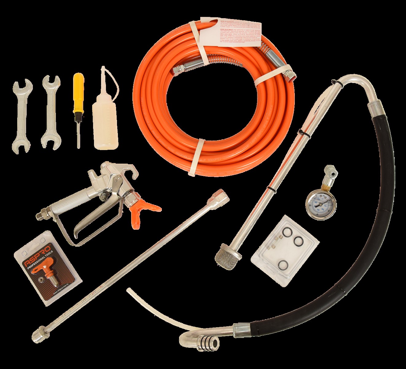 Окрасочный аппарат ASPRO-2000® поставляется в полной комплектации для запуска и начала первой работы. Обязательно промывайте окрасочный аппарат после окончания работы водой или растворителем, выбор материала промывки зависит от используемого лакокрасочного состава.