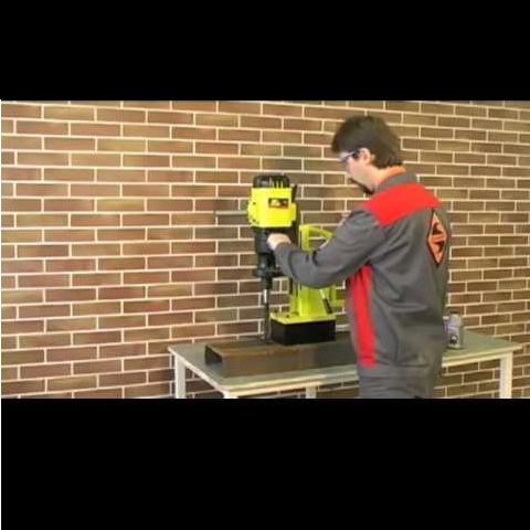 Станок крепится к обрабатываемой поверхности при помощи мощного электромагнита. При этом электромагнит и электродвигатель включаются независимо друг от друга. Сверлильная головка может перемещаться по вертикальным салазкам. Плавность перемещения может регулироваться вручную, а контроль вертикального передвижения контролируется встроенной специальной шкалой.